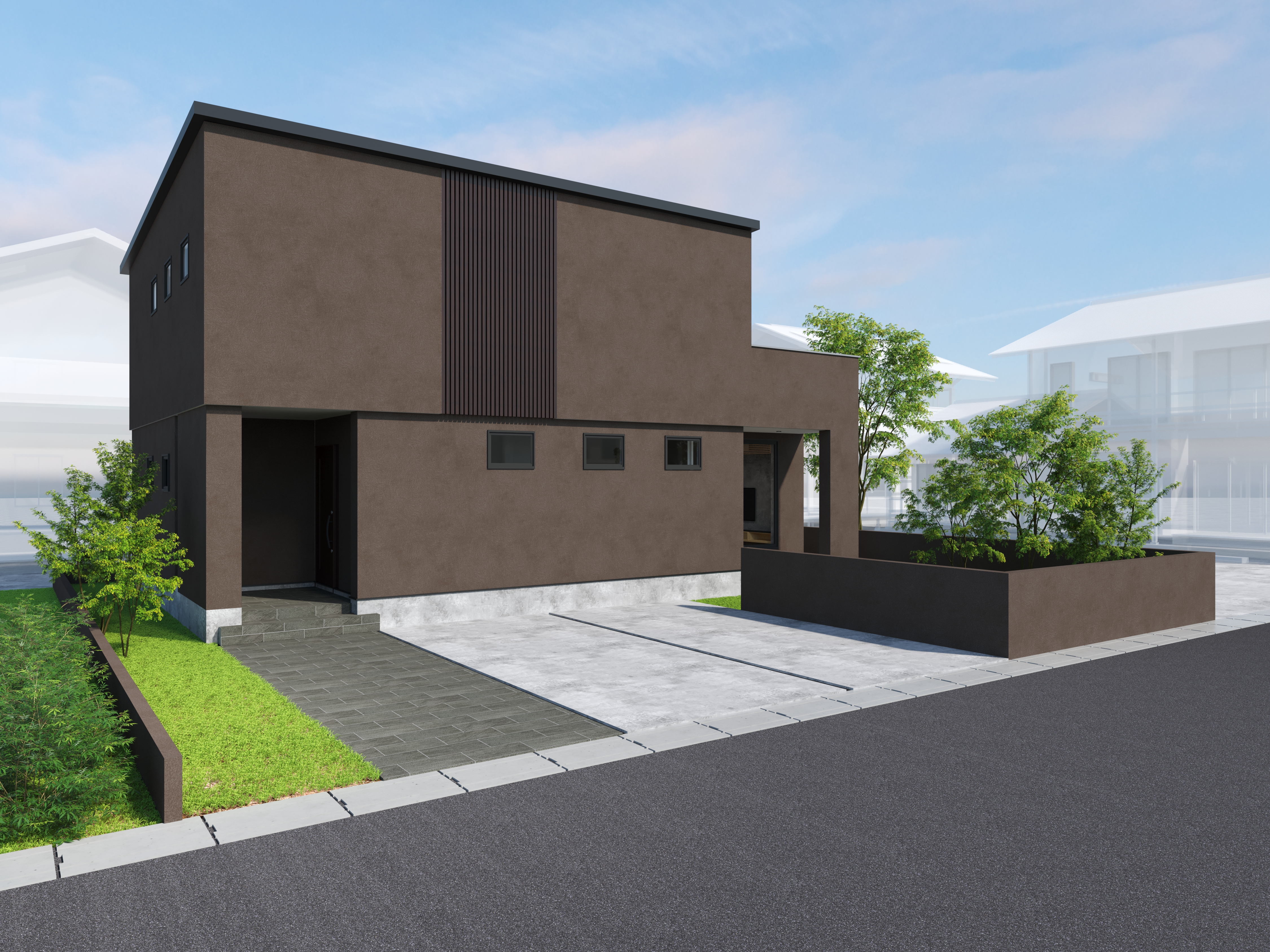 今回はウンノハウスさんのモデルハウス『欅タウン2』のパースを制作いたしました。こちらのモデルハウスは東根市に
