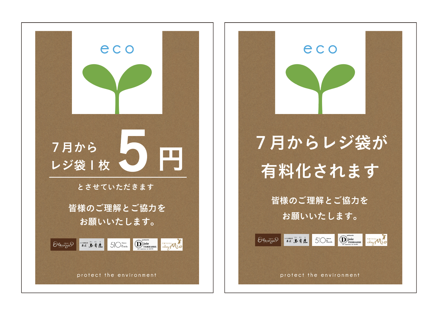 7月のレジ袋有料化に伴い、山形近郊の洋菓子屋さんのレジ袋有料化A4POP作成のご依頼がありました。