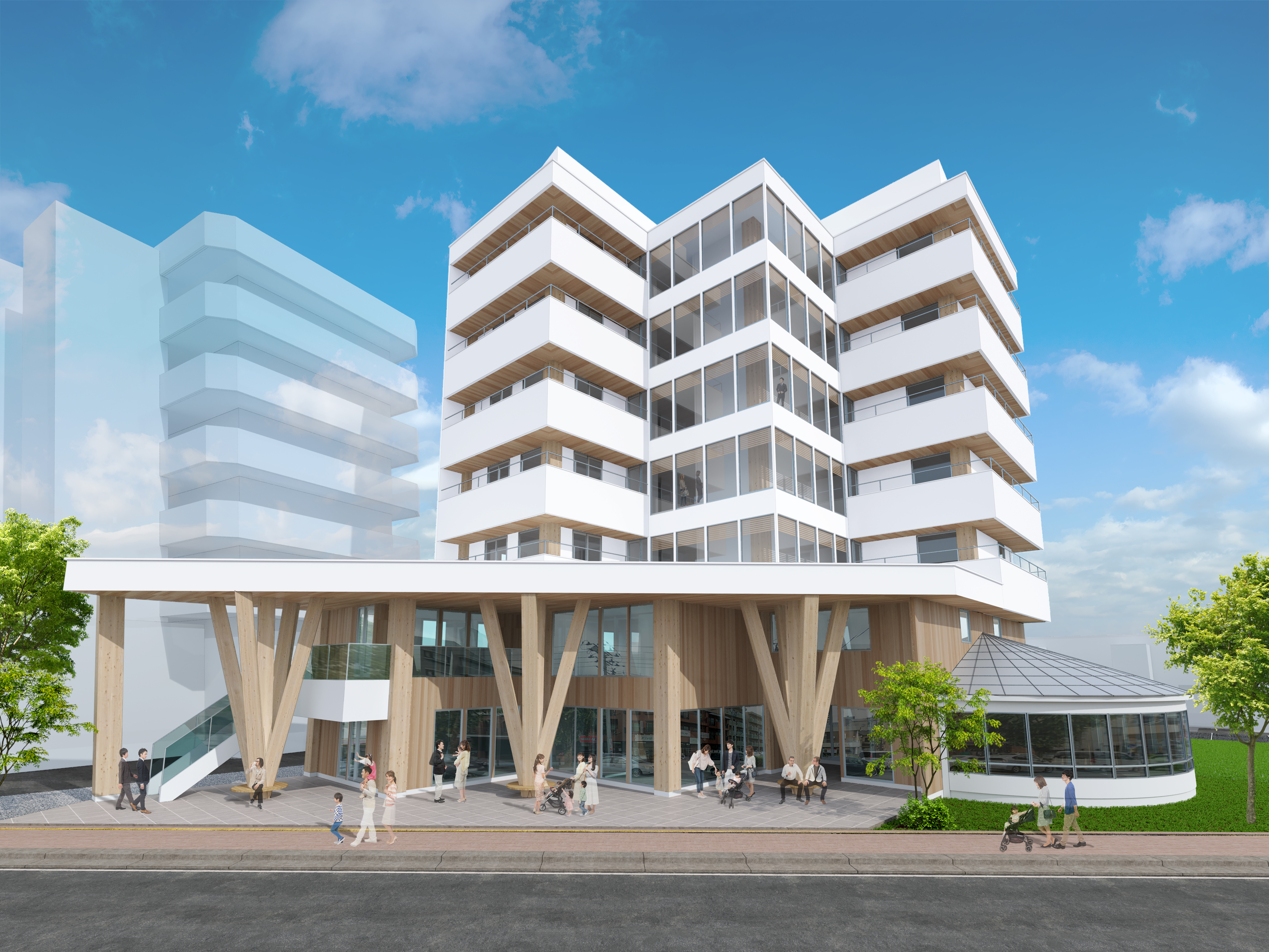 総合施設です。色んな世代の方が行き交う施設になると思いますので、そこに弊社も