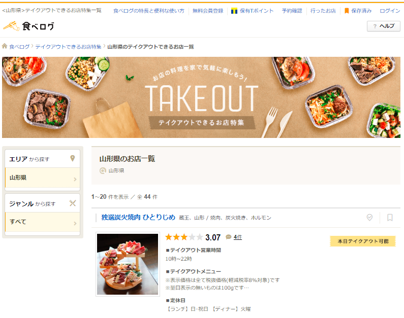誰もが聞いたことがあるグルメ系サービス「食べログ」。食べログさんが自粛ムードでもテイクアウトという方法で食を楽しんでほしいと思い企画された特設サービスです。